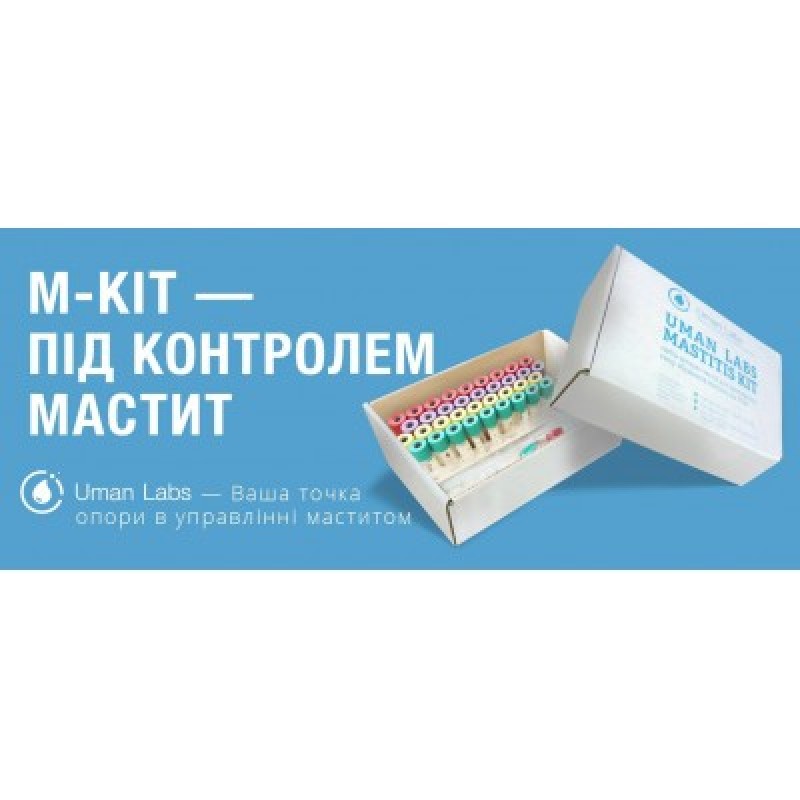 Набір експрес-тестів Uman Labs Mastitis Kit надасть змогу не витрачати дорогоцінний час та впродовж 12-24 годин встановити, чи потрібно застосовувати антибіотики в конкретному випадку маститу. Один набір M-Kit розрахований на дослідження 10-ти зразків та містить всі необхідні матеріали для цього. Інструкція, в якій чітко та послідовно описані всі необхідні дії для визначення виду збудника, також є довідником для інтерпретації отриманих результатів і надає рекомендації щодо наступних кроків після отримання висновків.